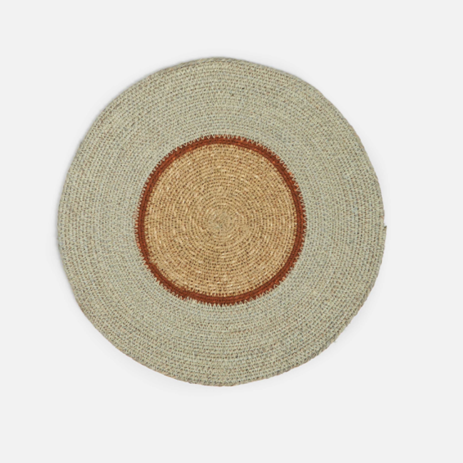 The placemats are handwoven in India using natural seagrass. Traditional weaving techniques celebrate the craftsmanship and create a unique, organic finish.