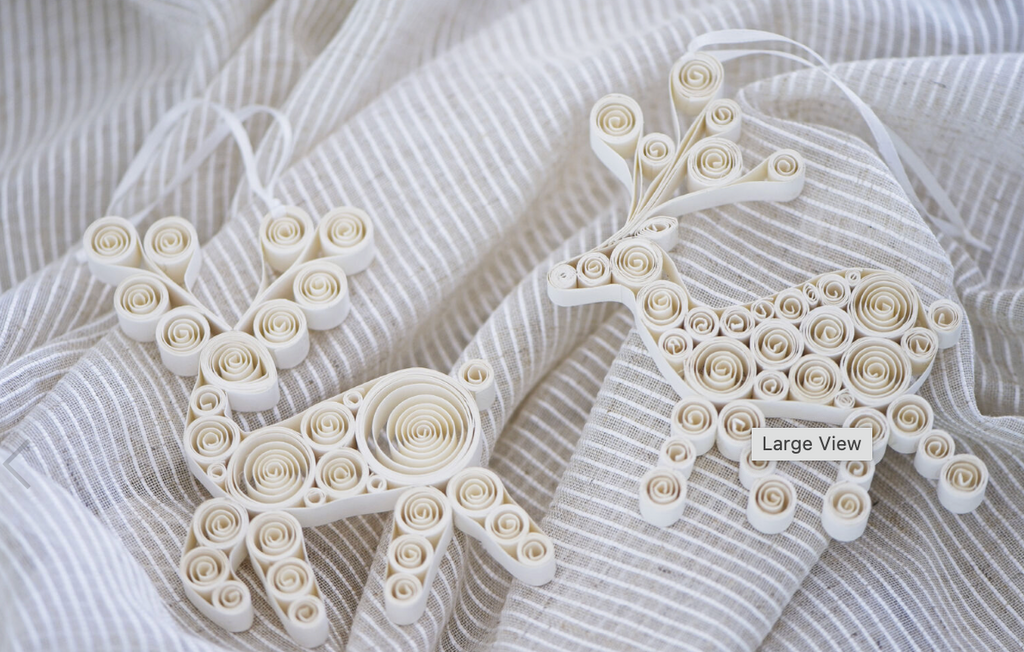Delicate, intricate and an artisan piece for your Christmas decor collection. This 2 piece set includes 2 paper quilling Reindeer and comes in a gorgeous white gift box.