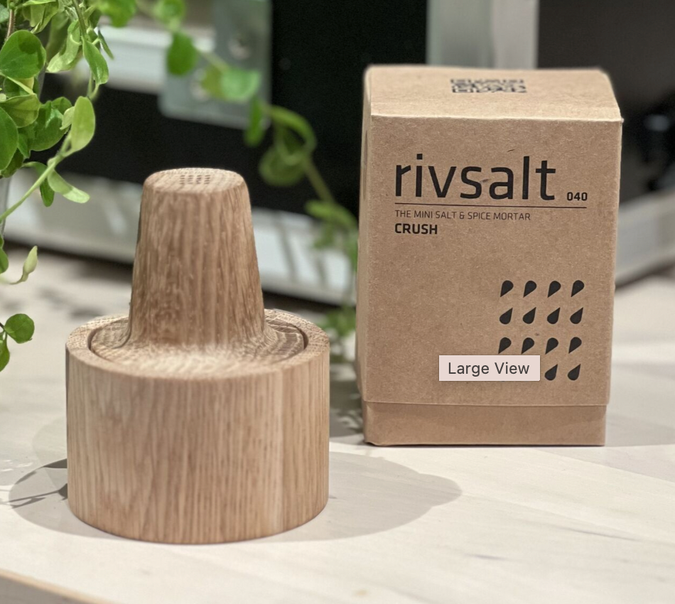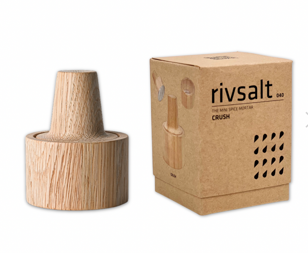 CRUSH is an innovative mini mortar with oak wood body and sharp stainless steel blades on the pestle and on the bottom of the bowl. A small wood brush is included, for easy caring for your new CRUSH product, to make it last.